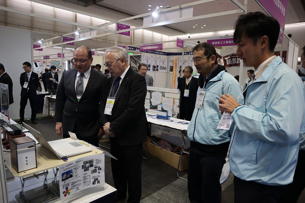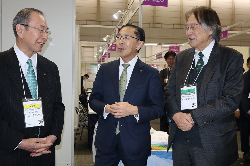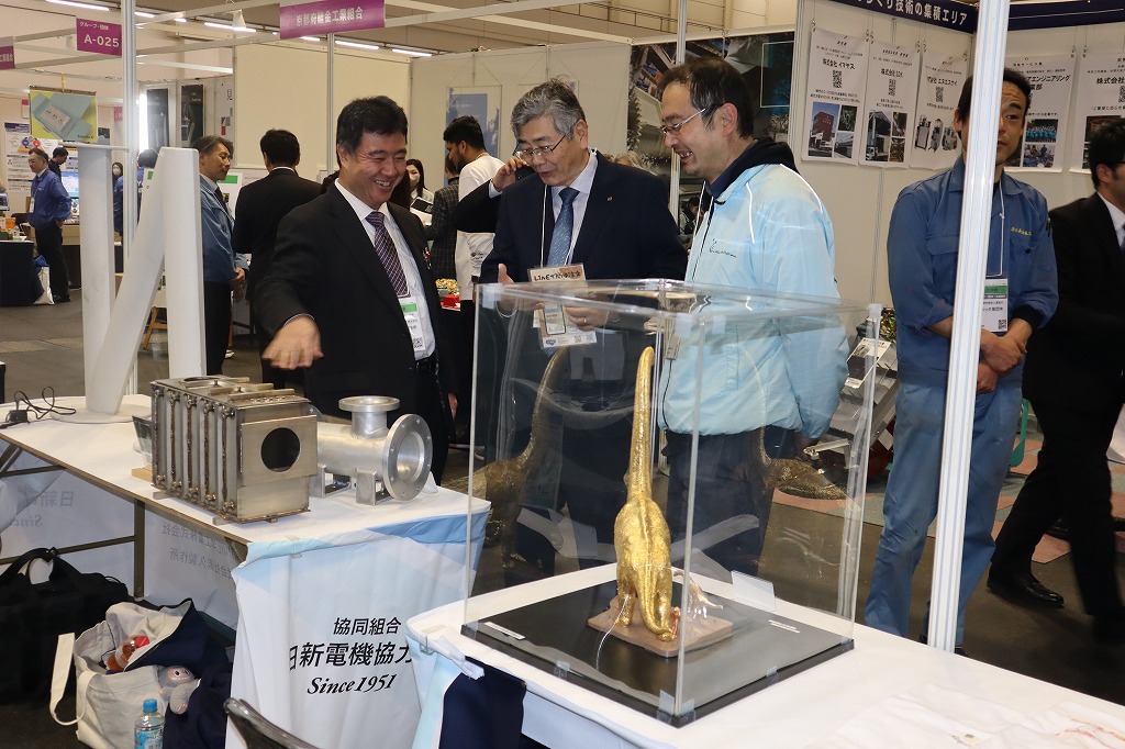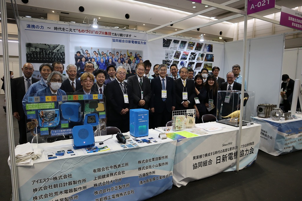 京都府西脇知事様、日新電機㈱から西村社長様、小林副社長様、松下取締役様、小畑顧問様、そして多くの皆様がブースをご覧くださいましたこと心より御礼申し上げます。毎年度、皆様が直接製品を手に取って下さり各社の説明を聞いてくださることが組合員の大きな励みとなっております